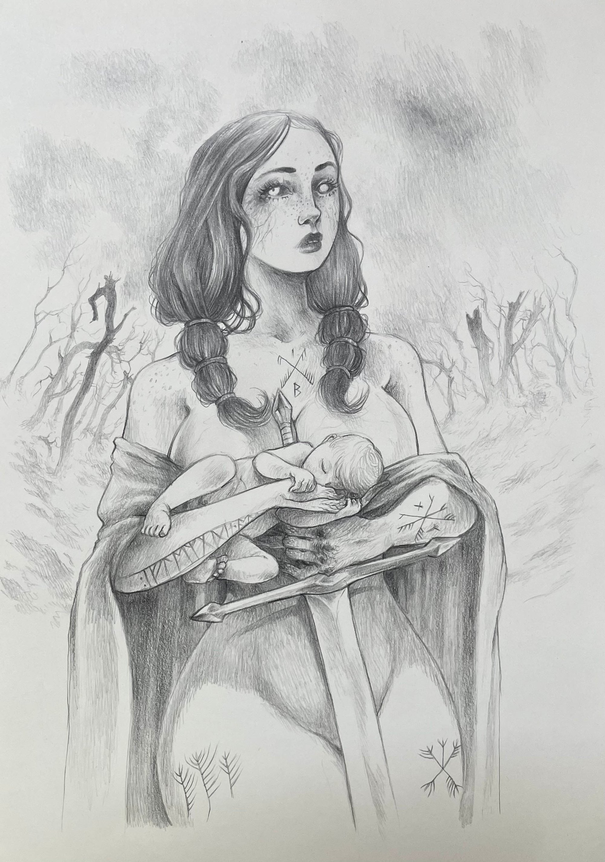 Illustration extraite de l'ouvrage "GODIVA". Crayon de bois graphite sur papier Moleskine. Taille : 21 x 29,7 cm / 8,25 x 11,70 pouces.