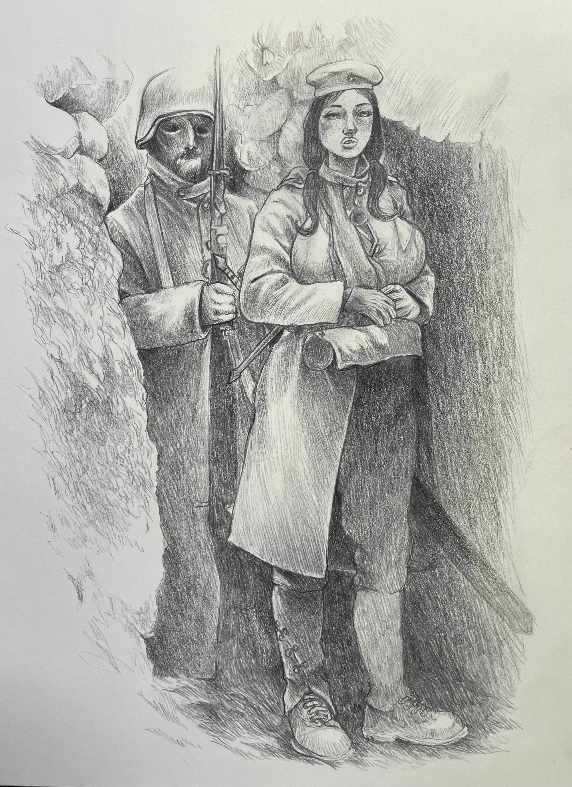 Illustration extraite de l'ouvrage "GODIVA". Crayon de bois graphite sur papier Moleskine. Taille : 21 x 29,7 cm / 8,25 x 11,70 pouces.